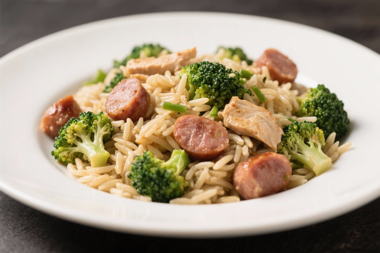 This is the kind of weeknight meal that makes you feel like you’ve got it together. Chicken sausage, tender broccoli, and tiny rice-shaped pasta come together in a creamy, comforting bowl without much effort. Everything cooks in one pan, and the flavors are bright, savory, and a little bit garlicky.