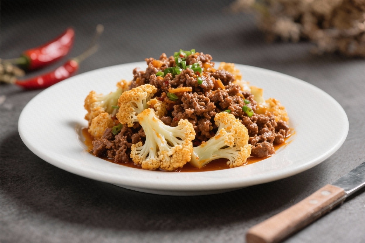 This is weeknight cooking at its best: crunchy, spicy, and deeply savory with almost no fuss. Crispy chile ground beef and cauliflower brings big flavor with simple ingredients and a quick stovetop method. The cauliflower gets golden and tender, the beef turns craggly and crisp, and a chile-forward sauce ties it all together.