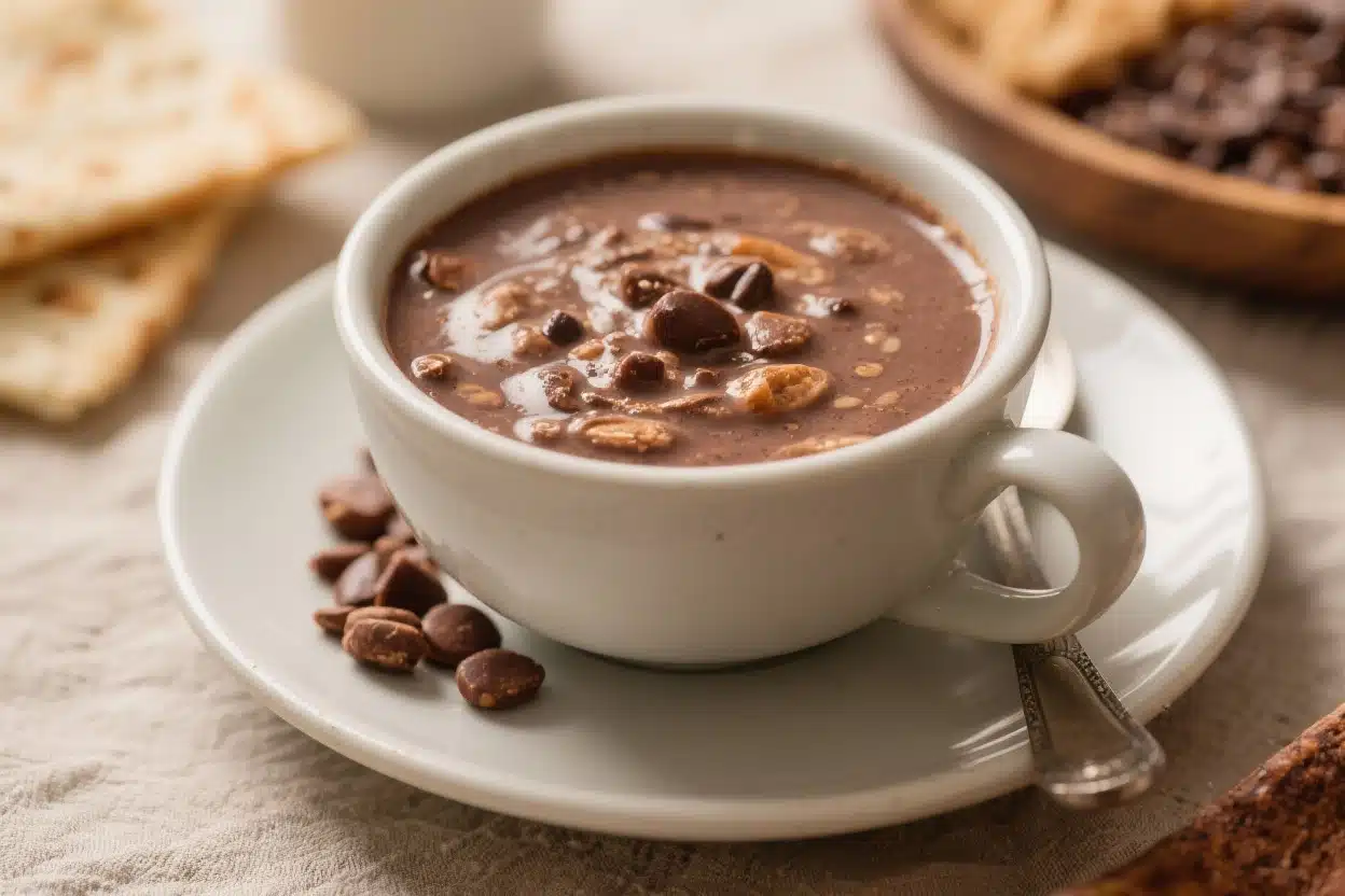 - Serve hot. Ladle into mugs and enjoy immediately. If it sits and thickens, whisk in a bit more liquid over low heat to loosen.
