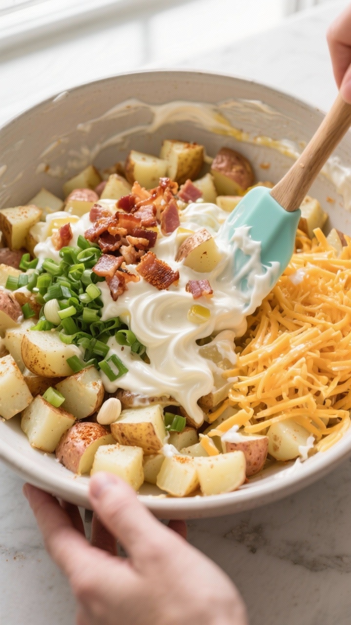 - Don’t over-stir: Gentle folding keeps the potatoes from breaking and the texture from turning mushy.