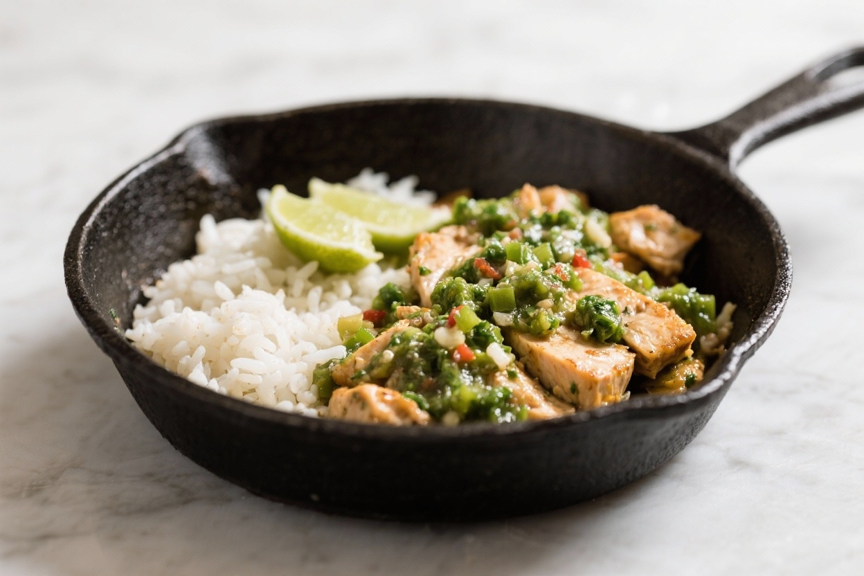 This salsa verde chicken rice skillet brings bold flavor and serious comfort to your weeknight lineup. It’s bright, saucy, and satisfying, with tender chicken, fluffy rice, and tangy green salsa all cooked together in one pan. No juggling multiple pots, no complicated steps just simple ingredients that work hard.