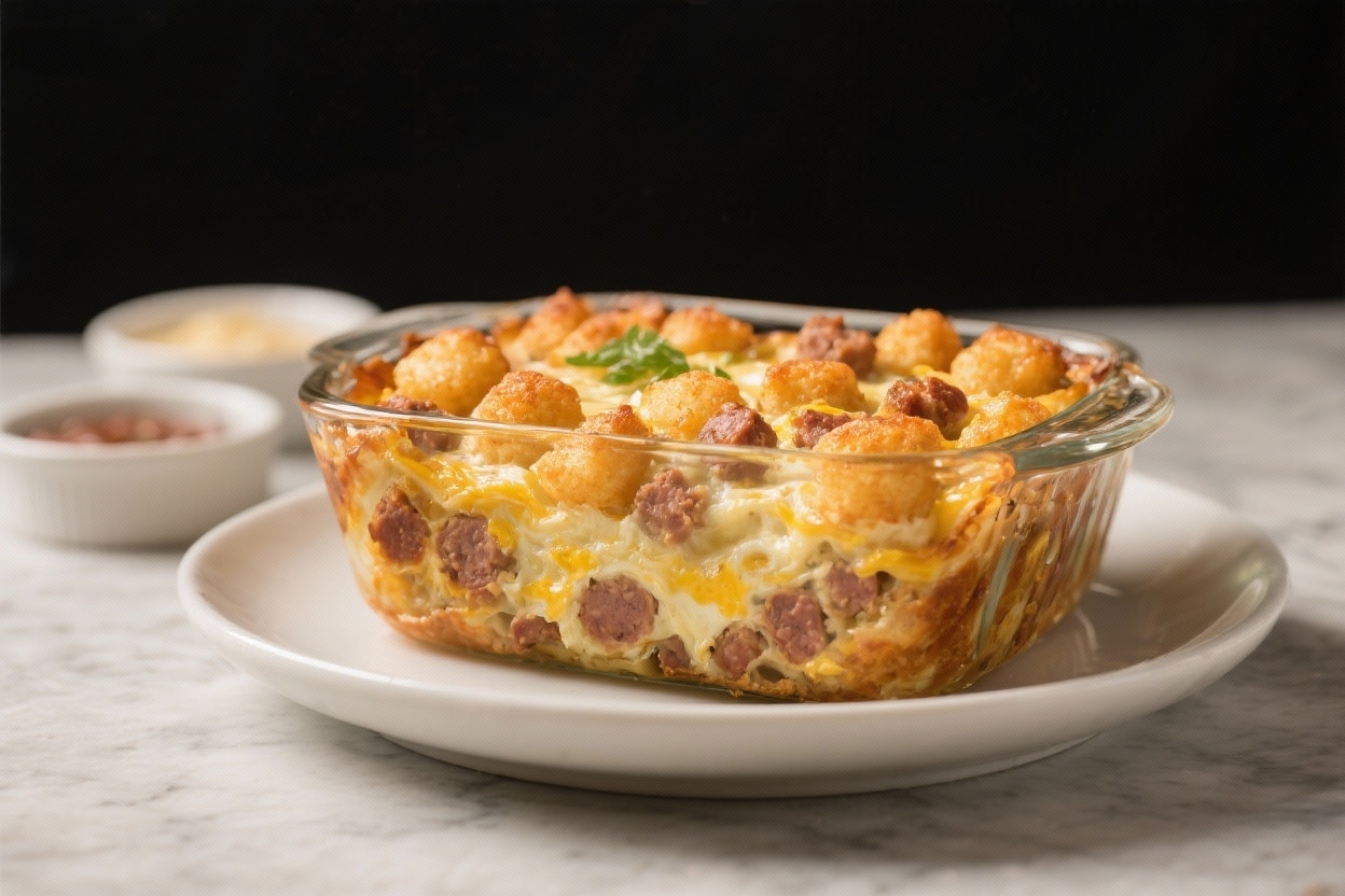 If your ideal morning includes something warm, savory, and satisfying, this tater tot sausage breakfast casserole checks every box. It’s the kind of dish you can assemble quickly, pop in the oven, and let the smells bring everyone to the kitchen. Crispy tots, creamy eggs, melted cheese, and hearty sausage come together in a way that feels both nostalgic and special.